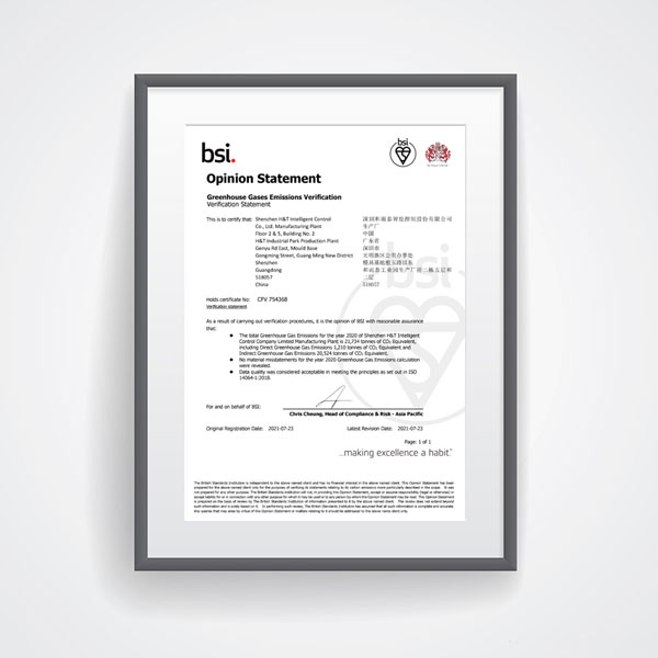 2021年7月,深圳和而泰智能控制股份有限公司(以下简称“公司”或“和而泰”)获得BSI颁发的碳足迹核查意见声明证书。英国标准协会(BSI)是全球领先的、最具权威性的标准研发和国际认证评审服务提供商。