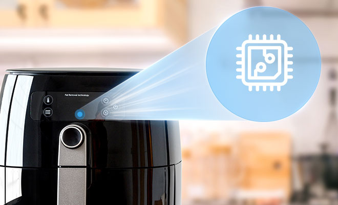 空气炸锅智控由主控板、显示操作界面及TFT 智能旋钮、WIFI 模组,语音识别,手势识别模组组成。空气炸锅通过以下功能特点让产品更加智能化,从根本上提升了用户的便利性和体验。手机监控空气炸锅行状态;手势识别功能;语音识别功能;TFT LCD 旋钮屏;