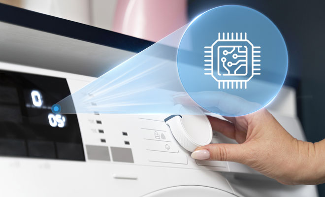 洗衣机智控系统由主控和变频马达控制一体的智控洗衣机板、显示操作界面及各种传感器臭氧模组组成。